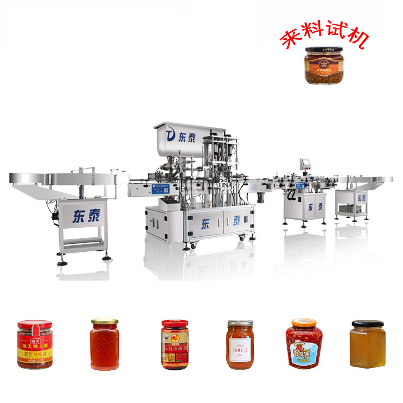3、該灌裝機主要針對食品行業(yè)的醬類分裝設計生產(chǎn),特別適用于調味品中帶顆粒并且濃度較大的辣椒醬、豆瓣醬、花生醬、芝麻醬、果醬、牛油火鍋底料、紅油火鍋底料等物質的粘稠醬類的灌裝。